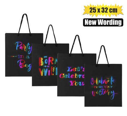 GIFT-BAG PPR ENG WORDS LRG 25x32cm BLACK