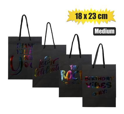 GIFT-BAG PPR ENG WORDS MED 18x23cm BLACK quantity