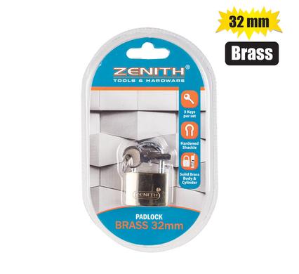 PADLOCK ZENITH BRASS 32mm CARDED quantity