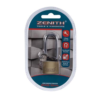 PADLOCK ZENITH BRASS 32mm LONG-SHKL CRD