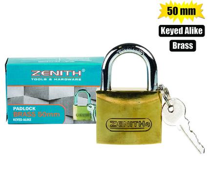 PADLOCK ZENITH BRASS 50mm KEY-ALIKE BOX
