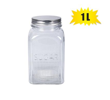 STORAGE-JAR GLS MTL-LID 10x18cm 1L SUGAR quantity