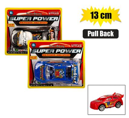 VEHICLE RACER PULL BACK 13cm ASSTD
